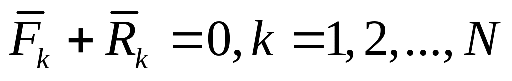 Пусть мех. система из N материальных точек находится в равновесии. Тогда приложенные к каждой точке активные силы и реакции связей уравновешены, т.е.