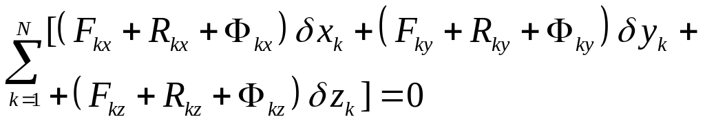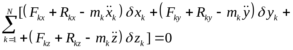 Умножим обе части уравнения на возможное перемещение k-й точки и просуммируем полученные для всех точек системы произведения.