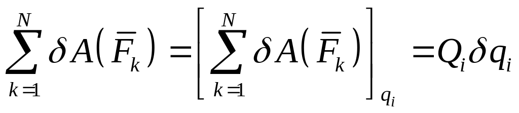 Обобщенной силой, соответствующей i-й обобщенной координате, называется величина, равная коэффициенту при вариации данной обобщенной координаты в выражении возможной работы сил, действующих на механическую систему.