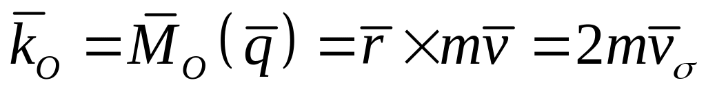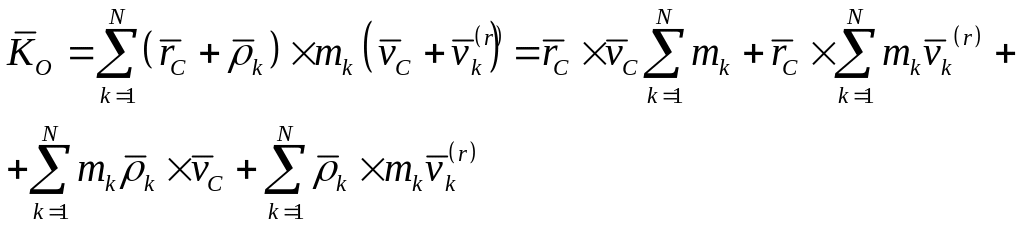 Главный момент количеств движения механической системы относительно неподвижного центра О для абсолютного движения системы равен векторной сумме момента вектора количество абсолютного движения системы (приложенного в центре масс) относительно того же центра, и главного момента количеств движения системы относительно центра масс для относительного движения системы по отношению к центру масс