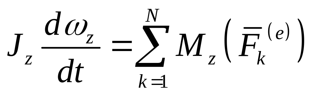 В случае вращения вокруг неподвижной оси тело имеет одну степень свободы. По теореме об изменении главного момента количеств движения мех. системы относительно оси вращения Oz