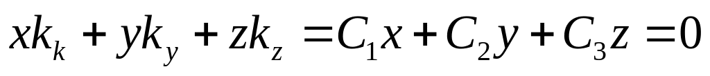 Т.е. координаты точки М(x,y,z) удовлетворяют уравнению плоскости, проходящей через начала координат.