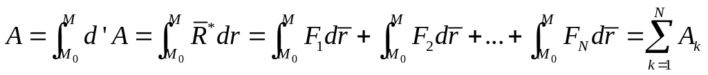 Тогда работа силы на перемещении точки из в текущее положение М равна алгебраической сумме работ составляющих сил на том же перемещении: