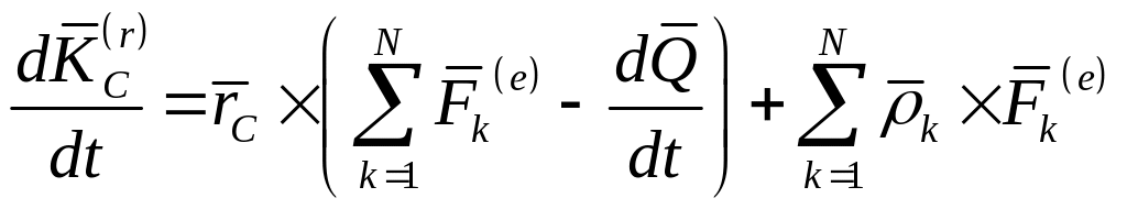 Первая производная по времени от главного момента количеств движения системы, вычисленного относительно центра масс для относительного движения механической системы по отношению к центру масс (по отношению к системе координат, движущейся поступательно вместе с центром масс), равна главному моменту внешних сил, действующих на точки системы, относительно центра масс.