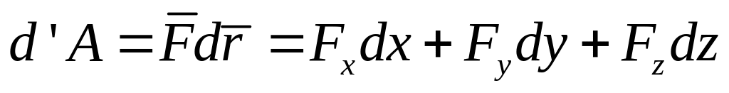 Элементарная работа силы равна скалярному произведению векторов силы и дифференциала радиус-вектора точки её приложения.