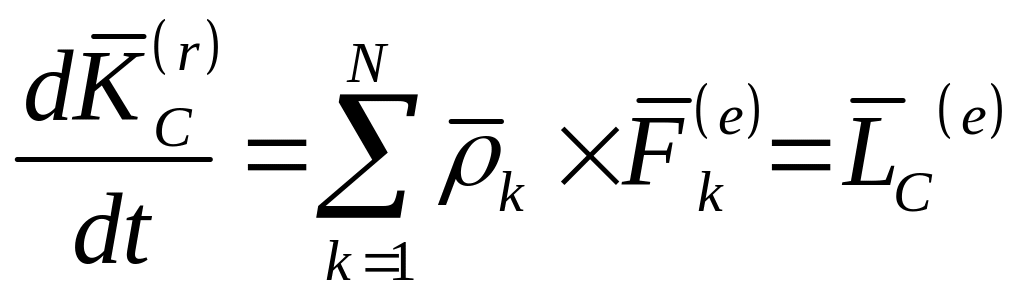 Пусть подвижная система координат CXYZ связана с центром масс и движется поступательно относительно неподвижной системы Oxyz. Согласно теореме об изменении главного момента количеств движения системы относительно центра О для абсолютного движения механической системы,