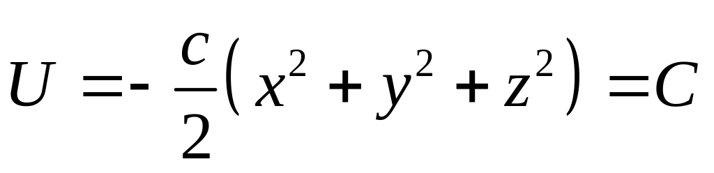 Поверхностями уровня линейной упругой силы будут концентрические сферы с центром в начале координат, а силовыми линиями – прямые, проходящие через начало координат, т.к. из