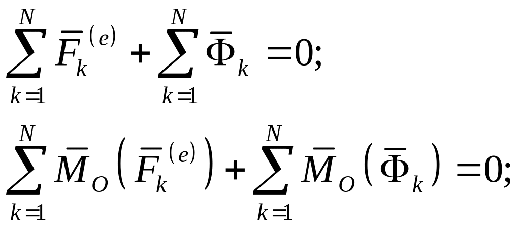 Так как главный вектор и главный момент относительно произвольного центра приведения внутренних сил системы равен нулю, то