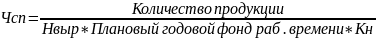 1.Списоч. численность рабочих (Чсп) по норме времени (Тшт) рассчит-ся по след. формуле: