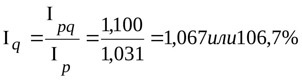3) Общий индекс физического объёма, используя взаимосвязь индексов товарооборота и цен.