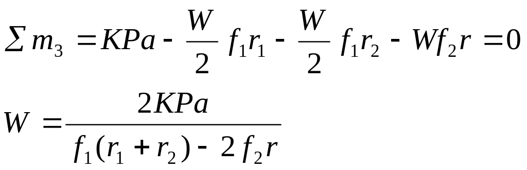 Смещению заготовки препятствуют силы трения в местах ее контакта с опорами. Условие силового равновесия будет иметь вид (с учетом коэффициента запаса К)