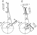 Силы и моменты, действующие в кривошипно-шатунном механизме двигателя, показаны на рисунок 1 (а – инерционные и газовые силы; б – суммарные силы).