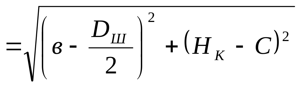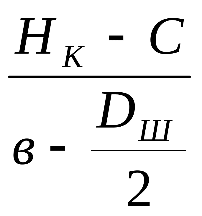 где hэ – высота эстакады; hc – высота сосуда с прицепным устройством; hп – высота переподъёма (устанавливается нормами ПБ); hш – расстояние по вертикали между осями копровых шкивов в случае их расположения в одной вертикальной плоскости; Нн.б – высота наземного бункера; hp – высота превышения над бункером.