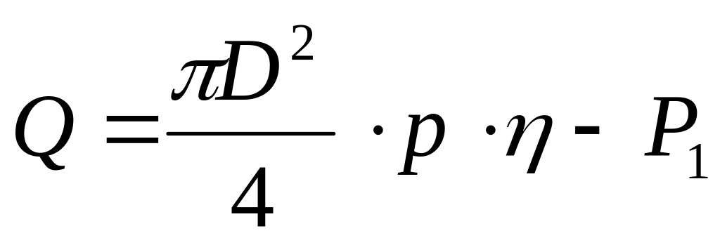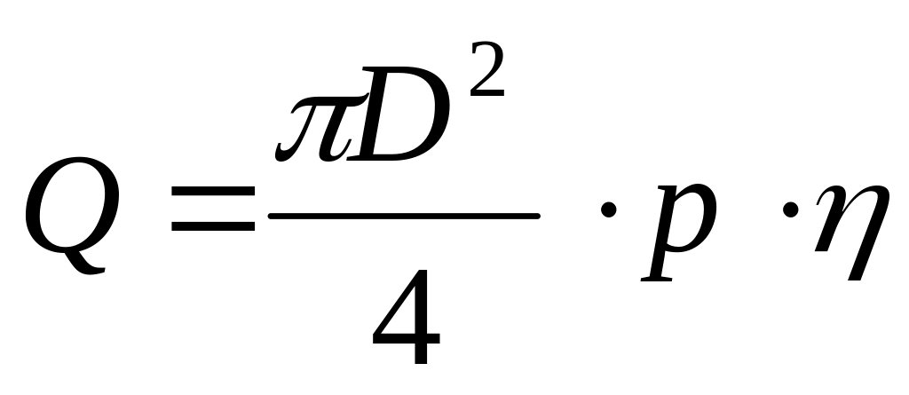 Приблизительный расчет усилия Q на штоке одностороннего действия: