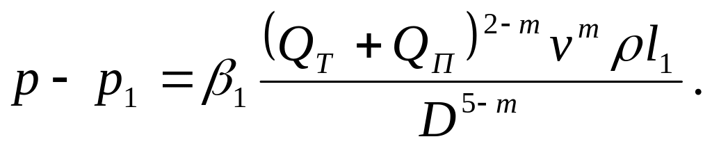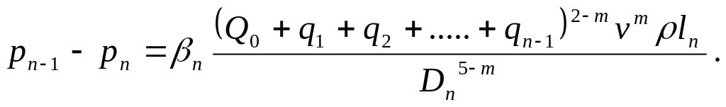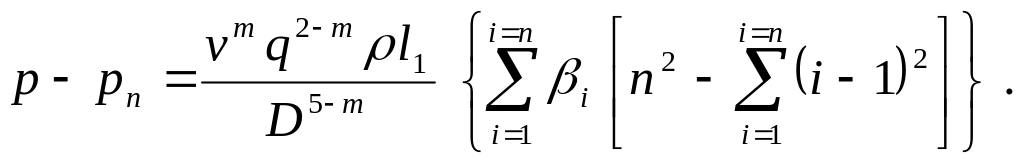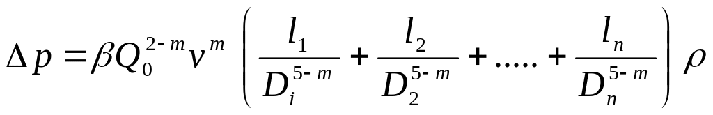 Если в последней формуле (2), когда D ¹ const, но режим движения на различных участках трубопровода одинаковый, т. е. ламинарный или турбулентный, и Re = const, то формулу (2) можно представить в следующем виде: