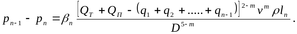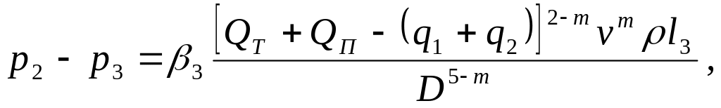 Определим перепад давления на каждом участке по аналогии с предыдущим.