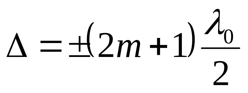 При наложении двух (или нескольких) когерентных световых волн происходит пространственное перераспределение светового потока, в результате чего в одних местах возникают максимумы а в других –минимумы интенсивности.