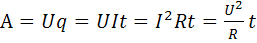 Если на участке не совершается механическая работа и не происходят химические реакции, то электрическая энергия превращается во внутреннюю и количество теплоты(Q), которое выделяется в проводнике за время(t), определяется законом Джоуля-Ленца: