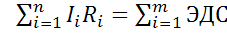 При обходе контура алгебраическая сумма падений напряжений на всех участках контура равна алгебраической сумме ЭДС, действующих в контуре.