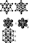 Как уже было показано, каждый последующий слой ПУ располагается в лунках предыдущего. Тип упаковки будет определяться тем, как заполняются третий и последующие слои ПУ. Частицы третьего слоя могут быть размещены двумя способами. Первый случай, когда частицы третьего слоя заполняют лунки второго типа, а второго слоя – лунки первого типа. В результате оказывается, что частицы третьего слоя располагаются над частицами первого и являются его эквивалентом. Тогда упаковка будет состоять из двух неэквивалентных типов слоев. Обозначив соответствующие слои как А и В, формулу такой упаковки можно записать |AB|AB|... и так далее. В этом случае ПУ упаковка имеет единственную ось высшего 6 порядка, ориентированную перпендикулярно слоям. А в идеальном варианте отношение параметров a/c = 1.633. Здесь же следует обратить внимание, что шар третьего слоя располагается над тетраэдрической пустотой между вторым и первым слоями, а октаэдрические пустоты образуют сквозной канал параллельный оси с. Рассмотренная двухслойная упаковка называется плотнейшей гексагональной или ПГУ. Примерами веществ, образующих ПГУ являются структуры Mg, иридосмина (Ir,Os) и осмирида (Os,Ir).