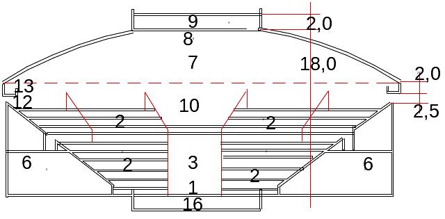 6-кольцевое фойе 7-полусфера перекрытия 8-колосниковая решетка