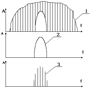 Рис. 56 туд составляющих гармоник, частоты которых сильно отличаются от собственной частоты колебаний упругой системы. В этом заключается процесс фильтрации. Описанный механизм можно проиллюстрировать с помощью рисунка 56. Пусть механическая волна с исходным спектром 1 проходит через резонирующую систему, у которой резонансная кривая имеет вид 2. В результате фильтрации наблюдается перераспределение амплитуд составляющих и спектр приобретает форму, представленную на кривой 3. А как было показано, резонансная (собственная) частота зависит от величины объема воздушной полости. Изменяя ее объем, можно варьировать характер фильтрации исходной звуковой волны и, следовательно, управлять спектром при прохождении воздушной полости.