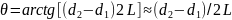 відстані L, та обчислення шуканого кута