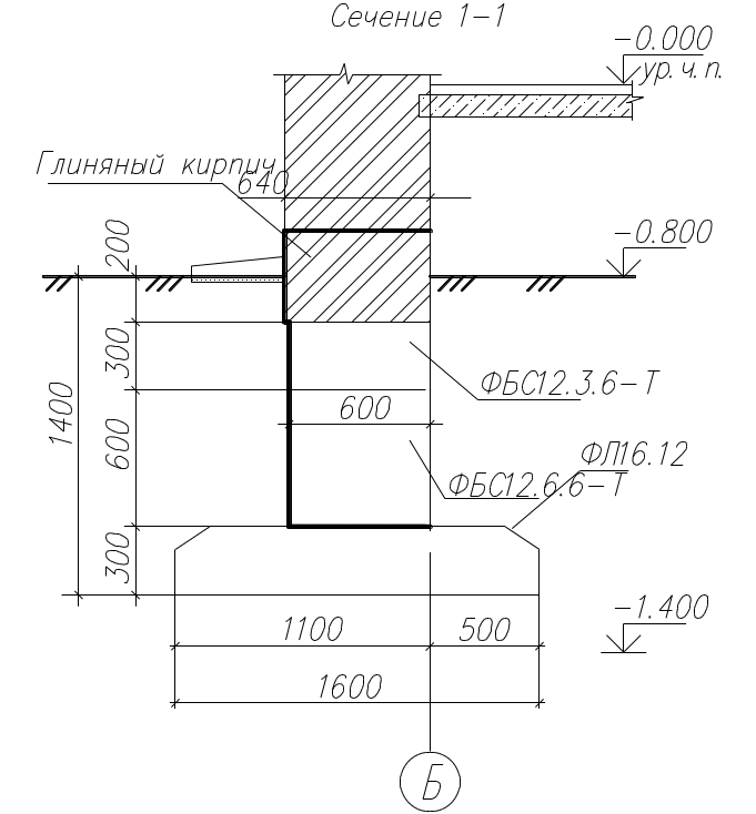3. Фундаменты. Выполнить эскиз сечения ленточного фундамента под наружные и внутренние стены кирпичного здания без подвала. Покажите на сечении пример расстановки необходимых размеров, надписей и отметок. Назначение и устройство гидроизоляции в зданиях без подвалов.