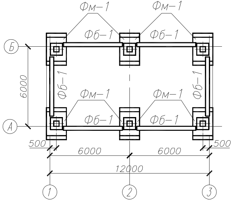 - •2. Фундаменты. Выполнить эскиз фрагмента плана фундаментов промышленного каркасного здания. Покажите на фрагменте плана пример простановки необходимых размеров, отметок, надписей.