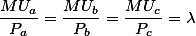 MUc ÷ Pc – взвешенная предельная полезность товара C