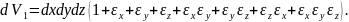 У випадку, коли потрібно знайти об’ємну деформацію, розглядають нескінченно малий паралелепіпед об’ємом dV = dxdydz. Вважають, що зміна цього об’єму пов’язана тільки зі зміно довжини ребер, а кутовими деформаціями нехтують, як більшого порядку малості.