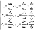 Формули (3.3), (3.4), (3.8), (3.9) дають шість основних залежностей складових лінійних та кутових деформацій від складових переміщення: