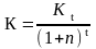 Kt = K (1+n)t, где Kt – размер вложения капитала к концу t-го периода времени с момента вклада первоначальной суммы, руб.; К – текущая оценка размера вложенного капитала, т.е. с позиции исходного периода, когда делается первоначальный вклад, руб.; n – коэффициент дисконтирования (т.е. доля доходности, или процентная ставка), доли единицы; t – фактор времени (число лет, или количество оборотов капитала).