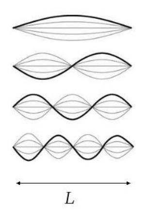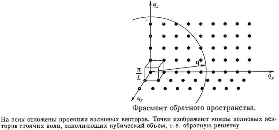 • Вдоль каждой стороны куба должно укладываться целое число полуволн. Это накладывает ограничение на значения проекций волнового вектора: