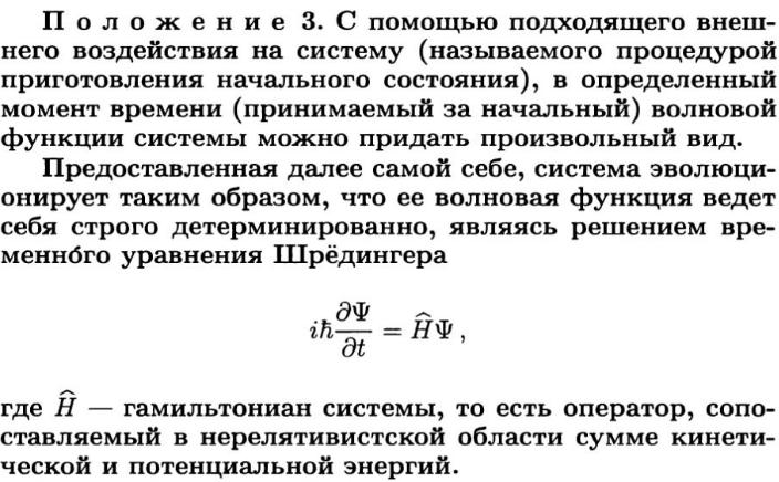 Общая логическая структура волновой механики Шредингера может быть представлена в виде следующих основных положений (постулатов), даваемых ниже в формулировке рекомендованного учебника (А.А. Матышева).