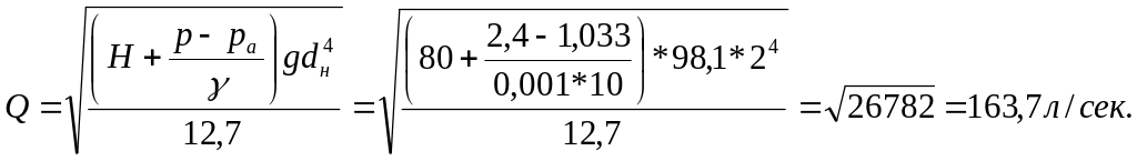 Дано: р = 2,4 кГ/см2,L = 100 м, dT = 200 мм, dн = 200 мм, H = 8 м.