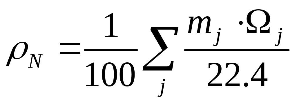 Плотность газа, состоящего из j компонентов, при нормальных условиях вычисляют по формуле:
