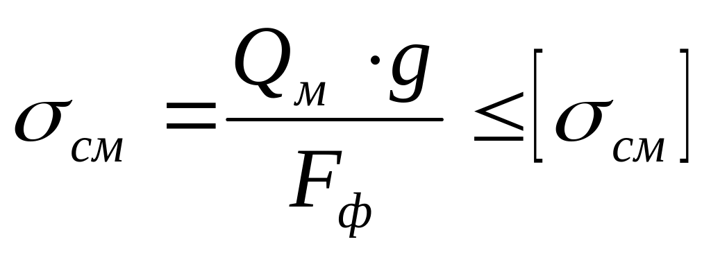 см - допустимое напряжение на смятие, МПа сосна – 6…9 МПа; бетон – 5…50 МПа.
