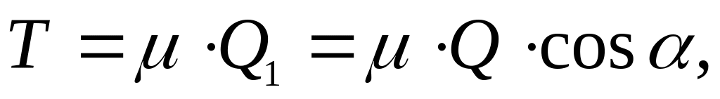 Усилие R будет складываться из усилия Q2 и силы трения Т, которая возникает от действия усилия Q1.