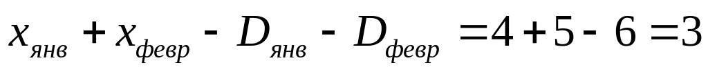 Март N = 3. Январь n = 3 выпуск = 4, а спрос = 3, февраль = 1, n = 2, выпуск = 5, а спрос 3 + 3 = 6, следовательно, 9 – 6 = 3 значит Март = 3, выпуск = 0, т.к. n = 1, а запас = 3.