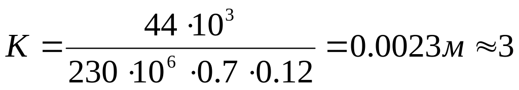 3мм – получено минимальное значение катета шва, для обеспечения запаса прочности К=3мм.