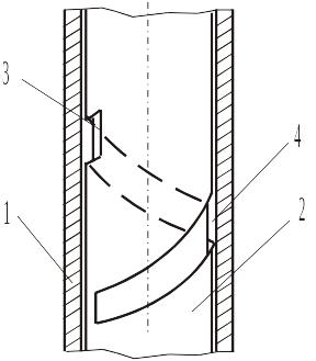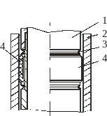 1 – стінка циліндра; 2 – плунжер насоса; 3 – піскознімна канавка гвинтового типу; 4 – порожнина між стінкою циліндра та плунжером, що утворилася за рахунок наявності піскознімної канавки