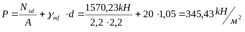 где γmf=20kH/м3 – средний удельный вес материала фундамента и грунта на его ступенях.