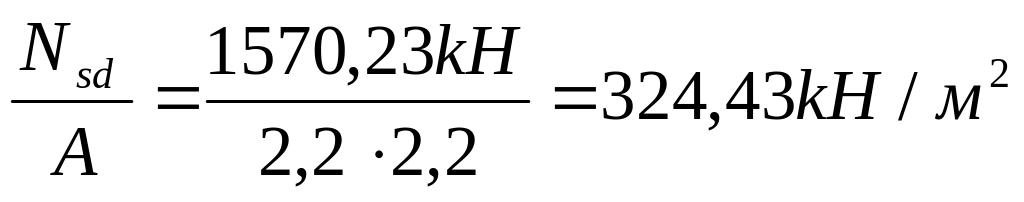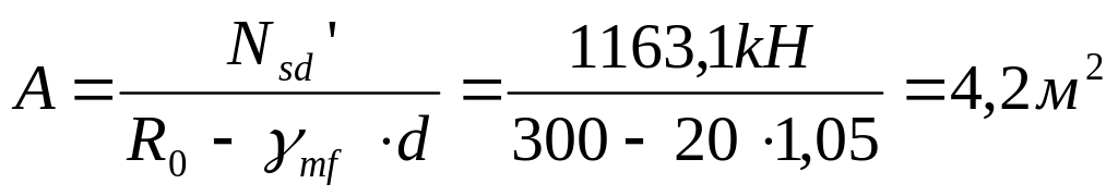 Для заданного района принимаем глубину заложения фундамента d=1,05м. Площадь подошвы фундамента