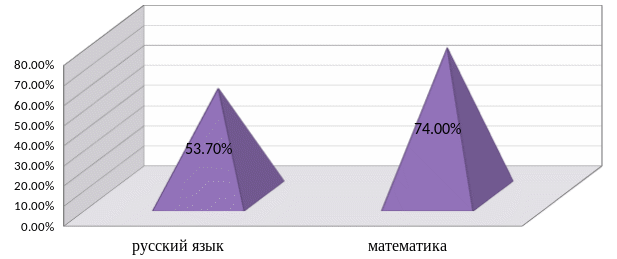 Доля выпускников, сдавших экзамены по математике и русскому языку