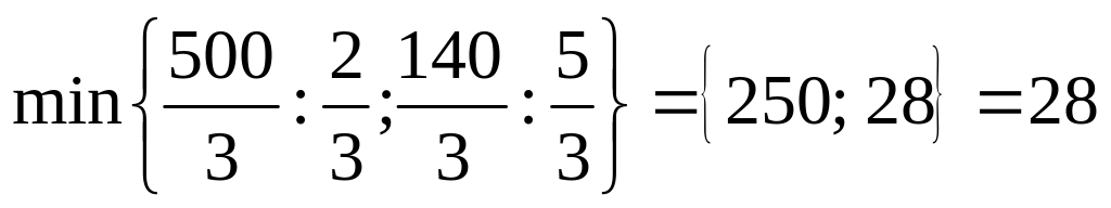 Опорный план не оптимален, так как есть отрицательные оценки. Выберем четвертый столбец за ключевой, составим для него соотношение (2.8).