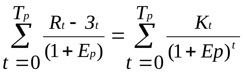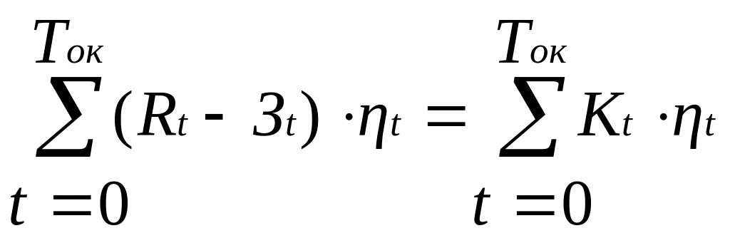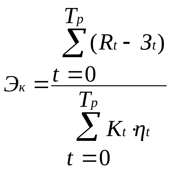 где: Rt – результат в t-й год; Зt – затраты в t-й год; Кt – инвестиции в t-й год; Тр – расчетный период; ηt – коэффициент дисконтирования.