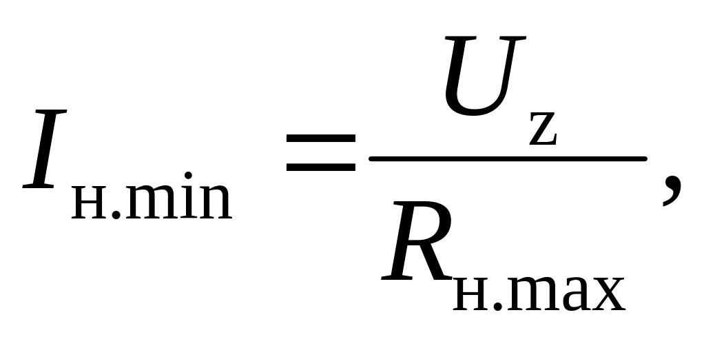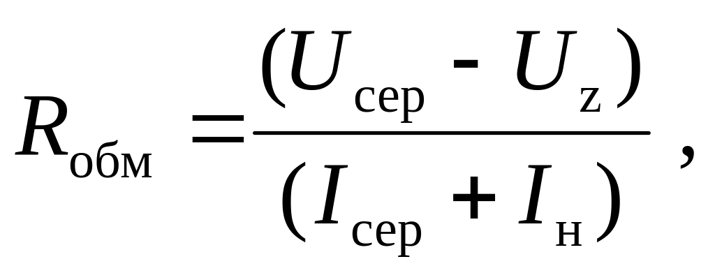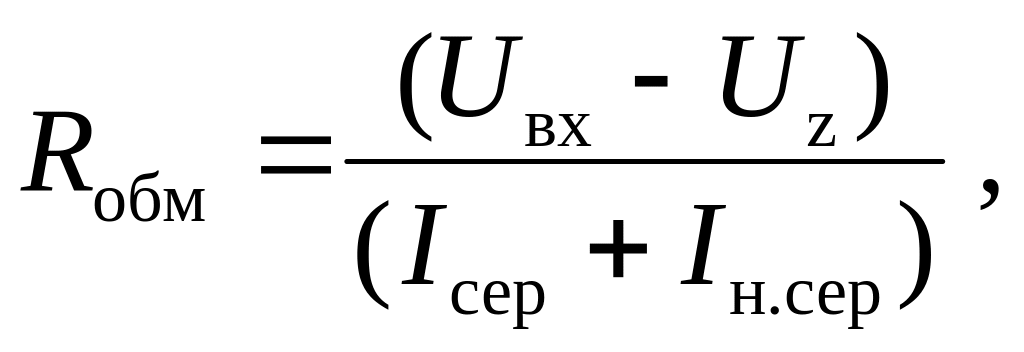 Якщо напруга джерела (вхідна напруга) нестабільна (змінюється від Umin до Umax) за умови, що опір навантаження Rн – постійний, значення резистора Rобм для середньої точки: