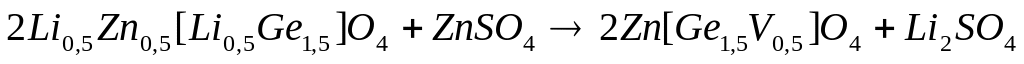 Катионы, заключенные в квадратные скобки, занимают октаэдрические, а катионы перед скобками — тетраэдрические узлы шпинельной структуры. В исходной шпинели октаэдрическая подрешетка характеризуется упорядоченным расположением ионов Li+ и Ge4+, а в продукте реакции — ионов Ge4+ и катионных вакансий (сверхструктура типа 3:1). Благодаря сходству структур реагента и продукта реакция протекает по топотаксическому механизму. Образующиеся при замещении вакансии структуры усиливают диффузию катионов и делают возможным завершить взаимодействие при сравнительно невысоких температурах. Обмен может быть осуществлен, если энергия Гиббса образования соли двухвалентного металла заметно меньше, чем у соли лития, благодаря чему значение G обменной реакции отрицательно [11].