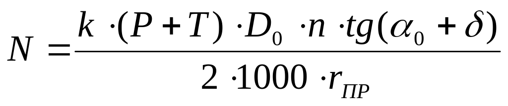 Силу трения материала о корпус шнека рассчитывают по формуле